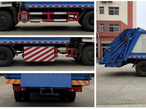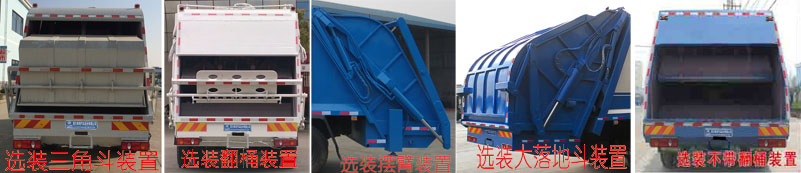 其它 | 1、該車僅選用3950mm,4500mm和4700mm軸距,該車有六種可選翻轉(zhuǎn)樣式,A:封閉式掛桶裝置(主照片),B:三角斗裝置,C:翻桶裝置,D:擺臂裝置,E:大落地斗裝置,F:不帶翻桶裝置。當選擇ABCDE時,整車后懸為2670mm,離去角為15°,該車整車長(mm)/軸距(mm)的對應關系為:8800/4700,8600/4500,8050/3950;當選擇F時,整車后懸為2420mm,離去角為16°,該車整車長(mm)/軸距(mm)的對應關系為:8550/4700,8350/4500,7800/3950;額定載質(zhì)量(kg)/駕駛室準乘人數(shù)(人)的對應關系為:7345/3,7410/2。2、防護材料:Q235碳鋼,連接方式:左右側面防護采用焊接連接在箱體底板上,后部防護由專用裝置代替豁免,離地高度為450mm. 3、ABS型號為ABS-E 4S/4M和3631010-C2000,生產(chǎn)廠家為威伯科汽車控制系統(tǒng)(中國)有限公司和東科克諾爾商用車制動系統(tǒng)(十堰)有限公司.4、該車安裝帶衛(wèi)星定位功能的行駛記錄儀.5、該車主要功能:能將垃圾自行壓實裝入,轉(zhuǎn)運和卸料;主要專用裝置:箱體裝置. | ||